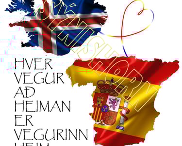 þú velur hvaða land þú villt tengja, hægt að setja saman tvö eða fleiri lönd með texta sem þú velur í þeirri stærð sem þig langar.
