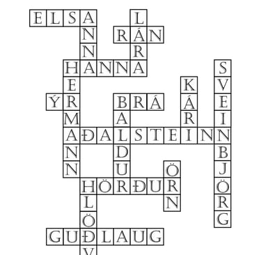 Nafnarugl í krossgátuformi, nöfn fjölskyldunar á vegg er persónulegt og fallegt veggskraut.