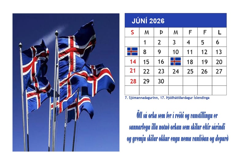 Dagatöl með sér íslenskum dögum og fánadögum.