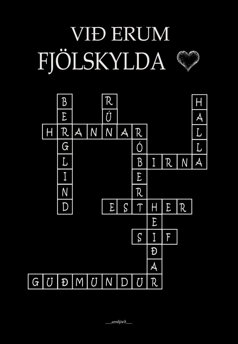 „Gerðu vegginn lifandi með nöfnum fjölskyldunnar í fallegri krossgátu.“